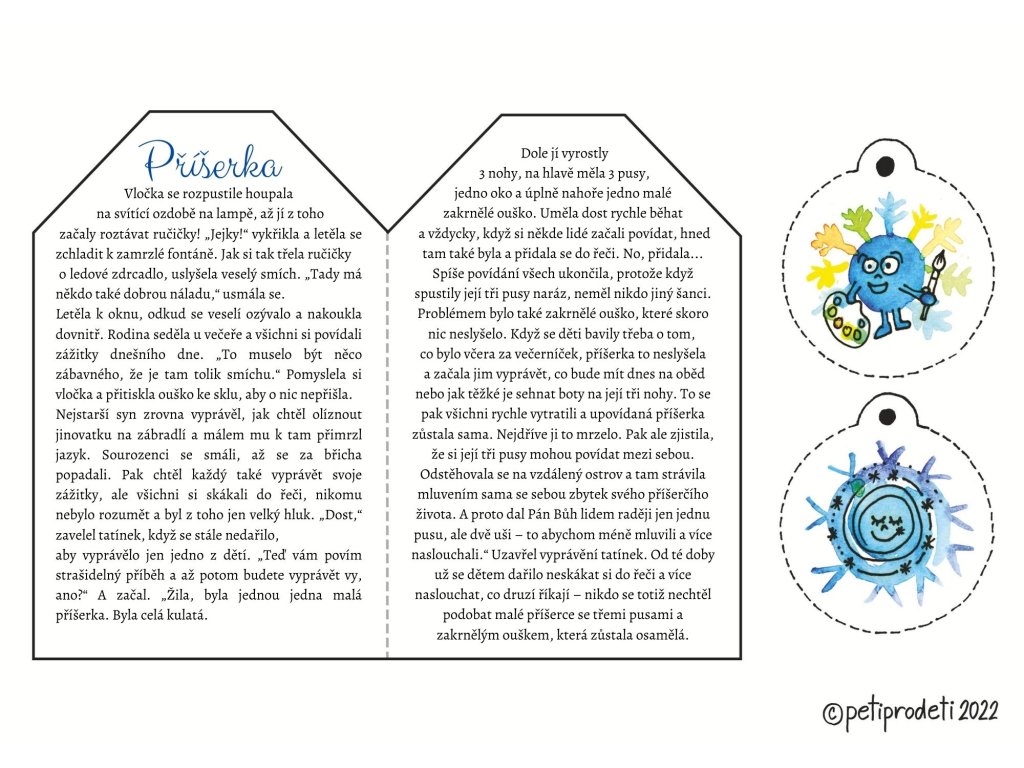 - na každém listu dvě baňky s vločkami kamarádkami - k výzdobě či ke hrám (viz. návod)